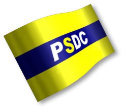 Na faixa central azul devem ser colocadas as letras PSDC, sendo o PDC em branco e o S em amarelo ouro.